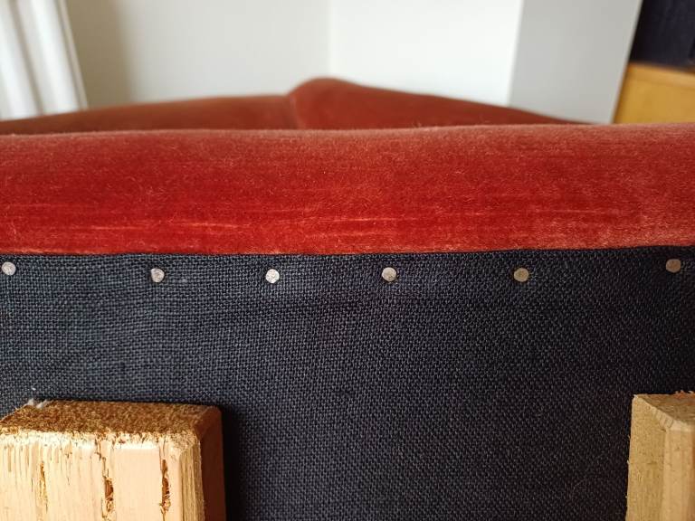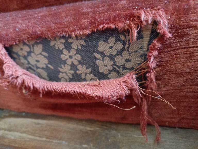 Rust red velvet but area in photo shows previously blue.