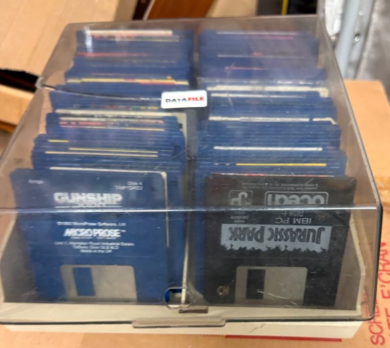 Large collection of software discs for Commodore Amiga, mostly games. All original and, although untested, physically in good condition having been stored in a disc box as in the second photo.