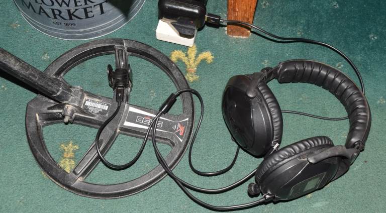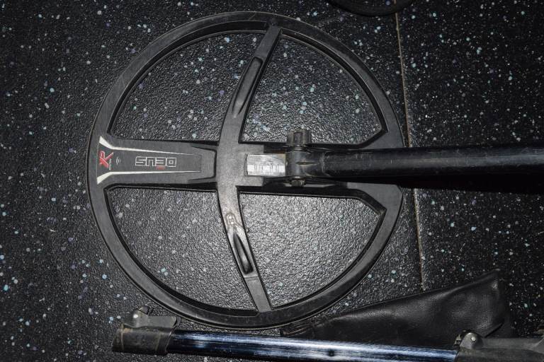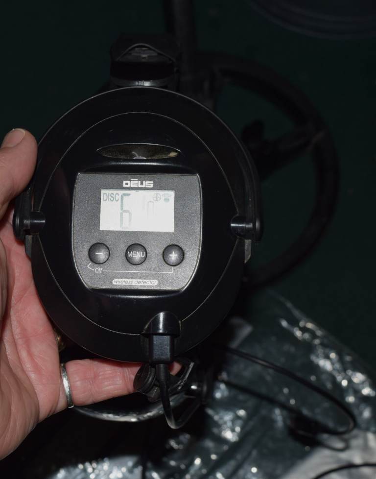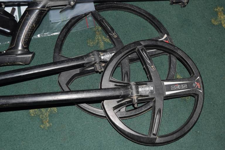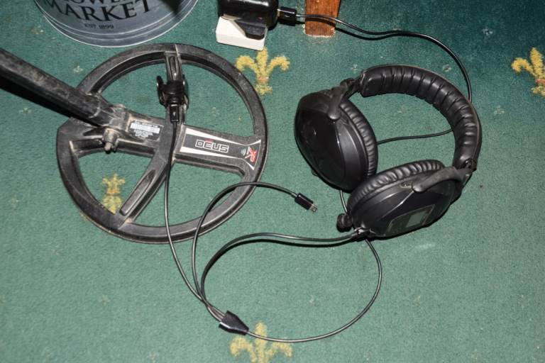 DEUS metal detector, fully wireless headphones, telescopic stem two coil heads 11 inch & 9 inch
