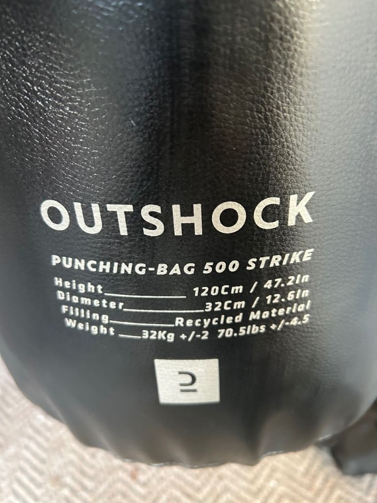 For Sale - Outshock 32kg full size heavy bag with bracket, gloves and pads. Barely used so is in nearly new condition. Cost over £200 less than 1yr ago.