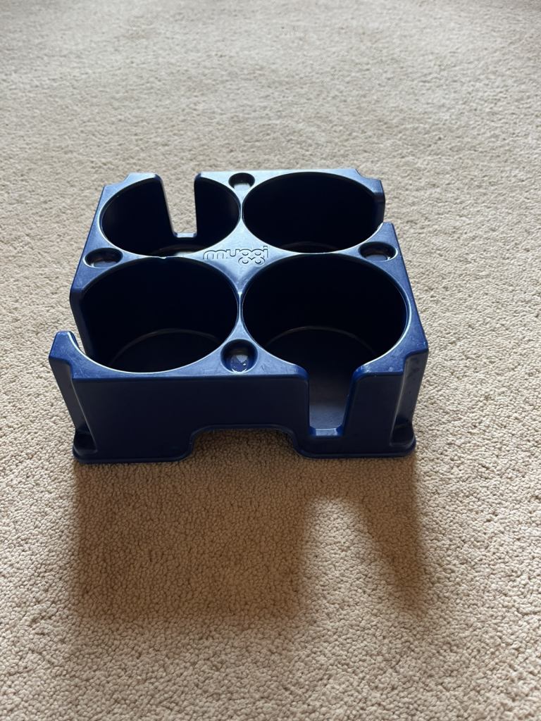 Muggi Multi Cup & Mug Holder, perfect for boating, camping/caravans and outdoor activities. This versatile holder is made by the well-known brand Muggi and is designed to accommodate a variety of cups and mugs. Crafted in the UK, it is made with high-quality materials and built to last. Used but in good condition