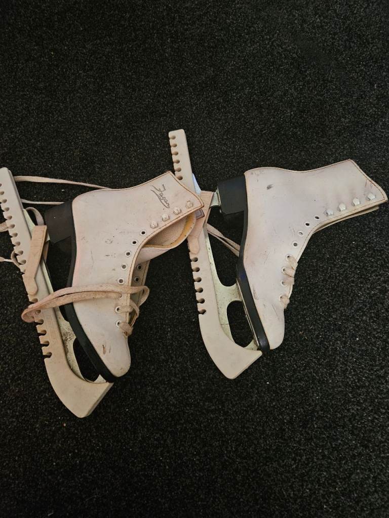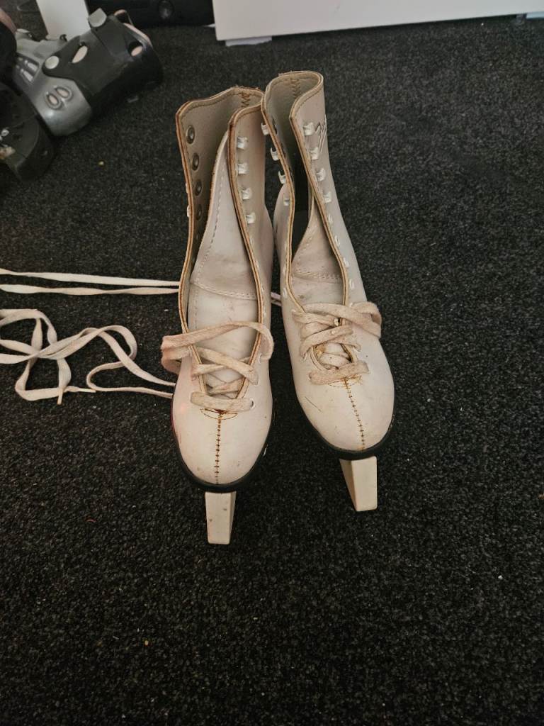 White size 3 ice skates with blade covers good condition. size 4 rollers boots hardly worn.