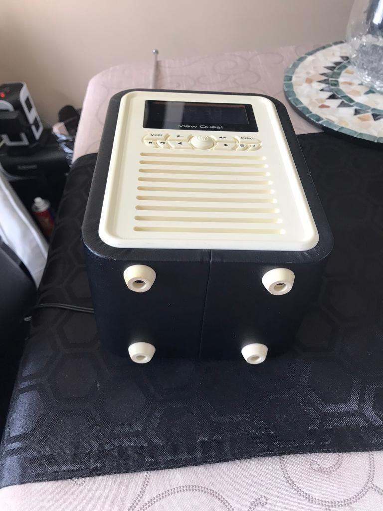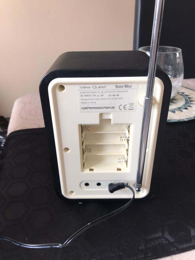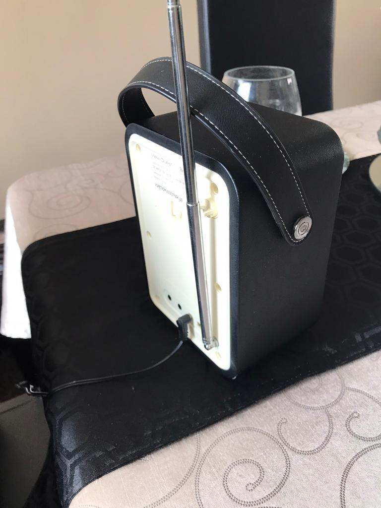 DAB / FM radio with bluetooth, aux-in connection, headphone socket, USB charging port, my EQ and dual alarm with sleep timer. In black and cream. Has a power lead or can be fully portable with use of AA batteries. Good sound output and built in equaliser feature allows you to adjust sound to your preference. In excellent condition.