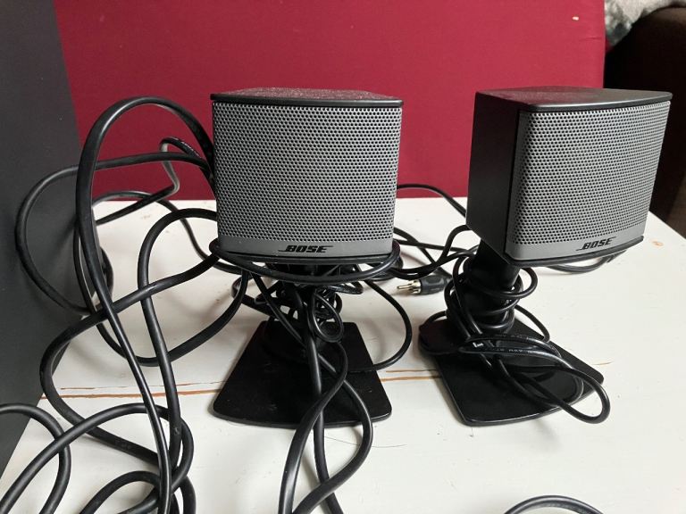 Bose companion 3 series II for sale. Please note: Speakers work perfectly, however there is an occasional static/buzz noise which starts roughly 1 one hour after use coming from the subwoofer. It might go away but then comes back. I am not sure where the issue is originating but I did some testing and I believe it might be the control pod. The price reflects the condition. The system obviously can still be used but it needs some investigation.