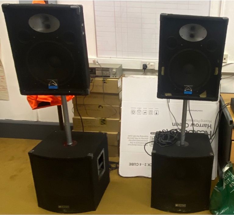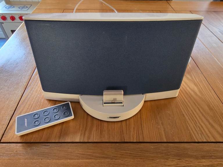 2no Bose Soundock Series III iPhone speakers, lightning connector with remote controls and power cables. 1no Orange, 1no Blue.