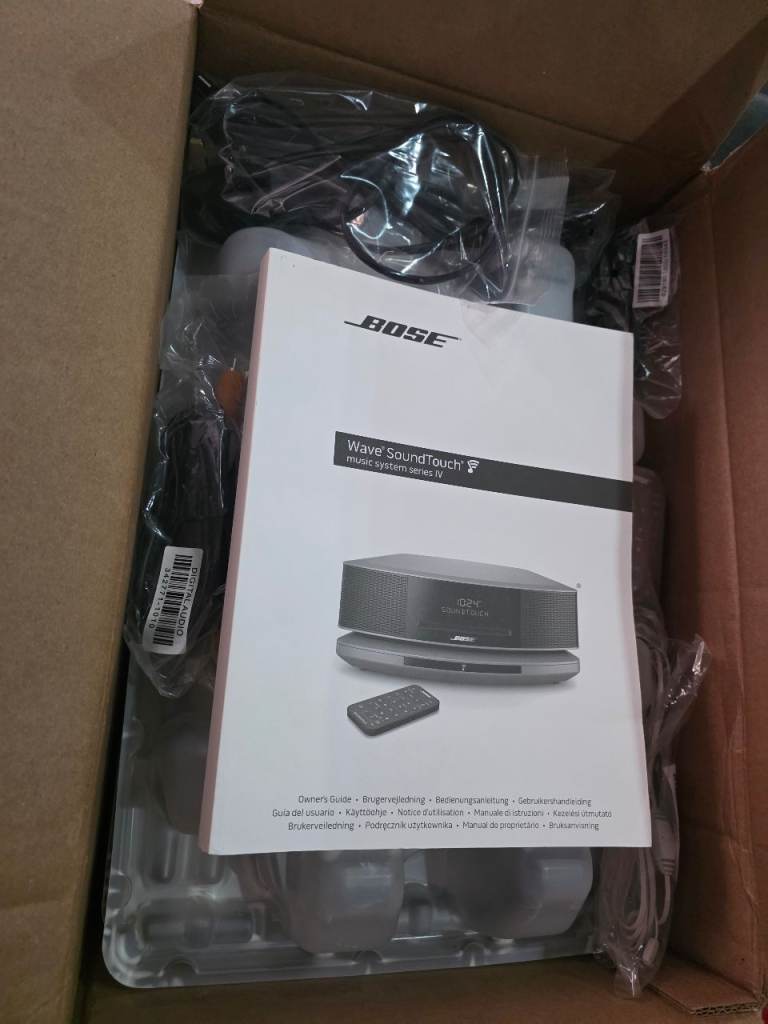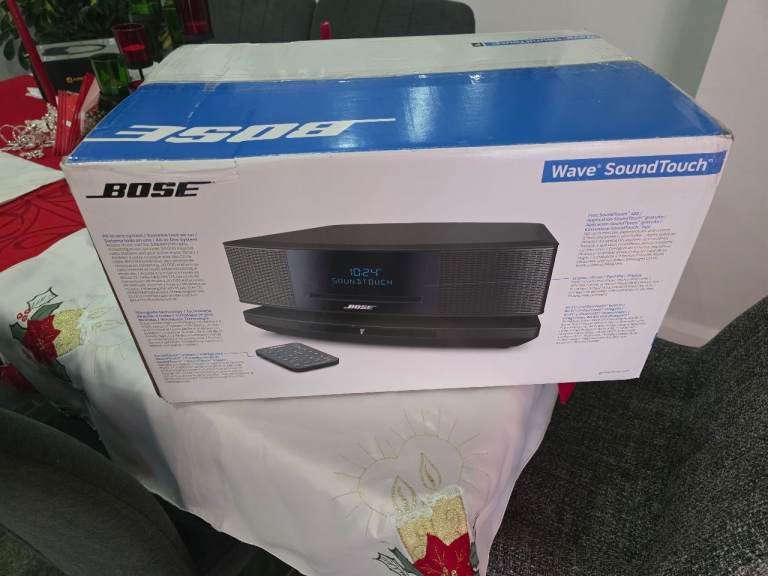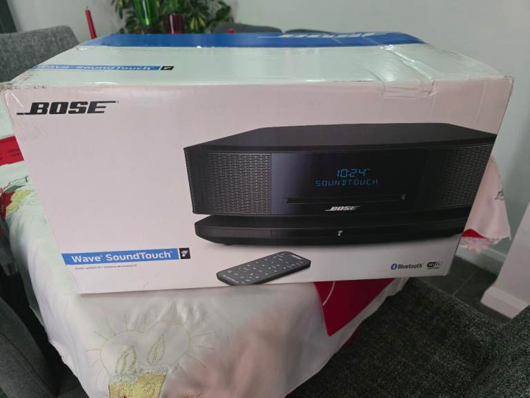 Bose Wave Music System iv in Most popular Espresso Black. Comes with wifi/Bluetooth Pedestal and all in Perfect working order. Also comes with all Original Bose Accessories and Packaging. Very rare and also discontinued now by Bose so hard to come by. Also Happy to post at buyer's cost too, any more info please feel free to ask, thanks