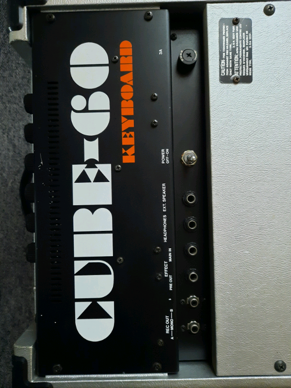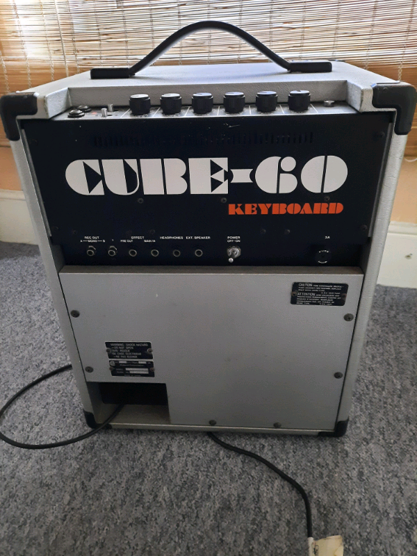 Cube 60 amplifier Silver case. Heavy. H550xW450xD300 2 inputs with multiple outputs including headphones, pre-amp, main and recording out. 60 Watts. 2 channels including switching reverb. Can be used for keyboard, guitar, microphone or modern input with correct jack plug and cable. Few surface finish marks on case. Unit in full working order including all switches and knows etc. Cash or bank transfer deal only. No courier collection accepted. Only personal collection or possible delivery to local address after discussion.