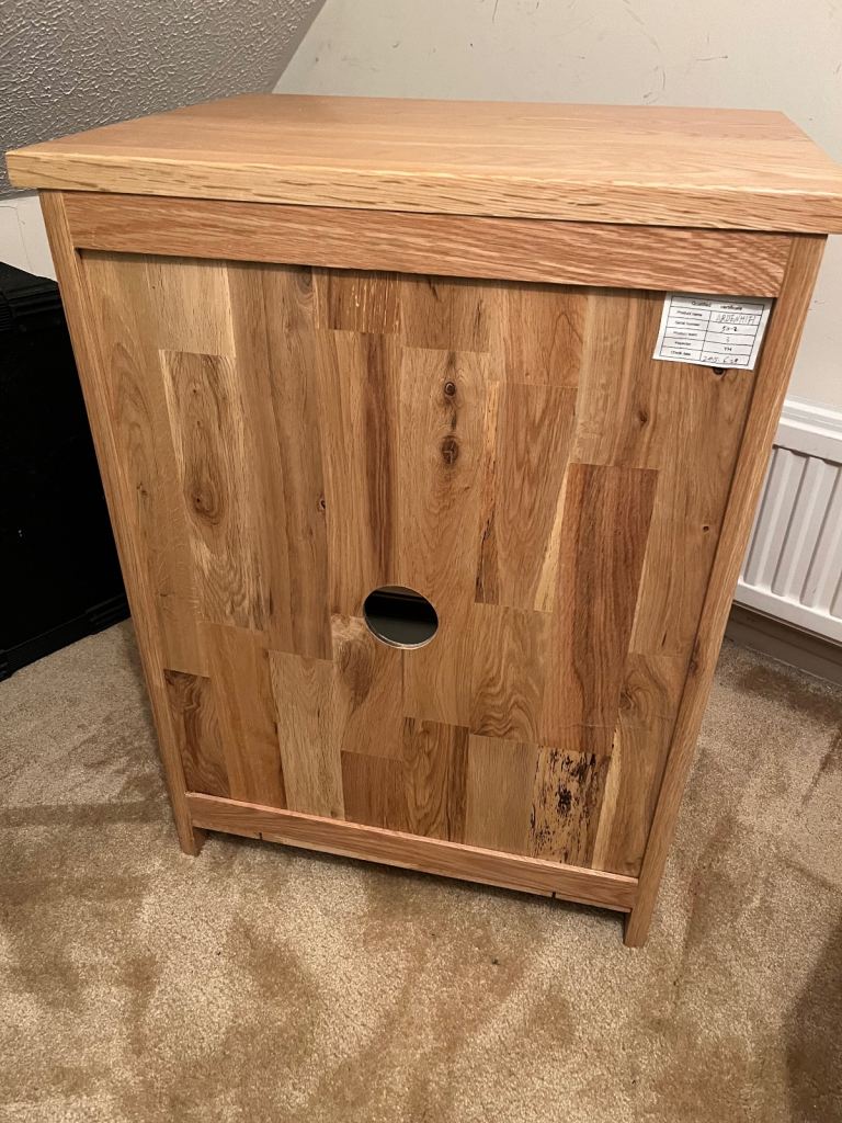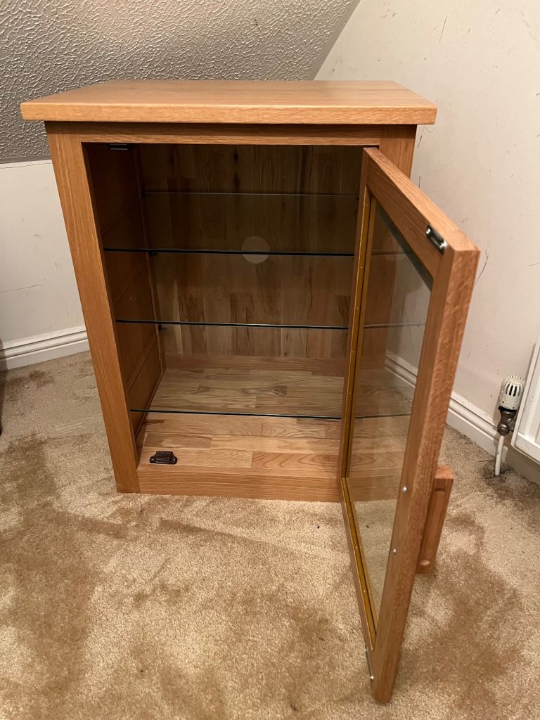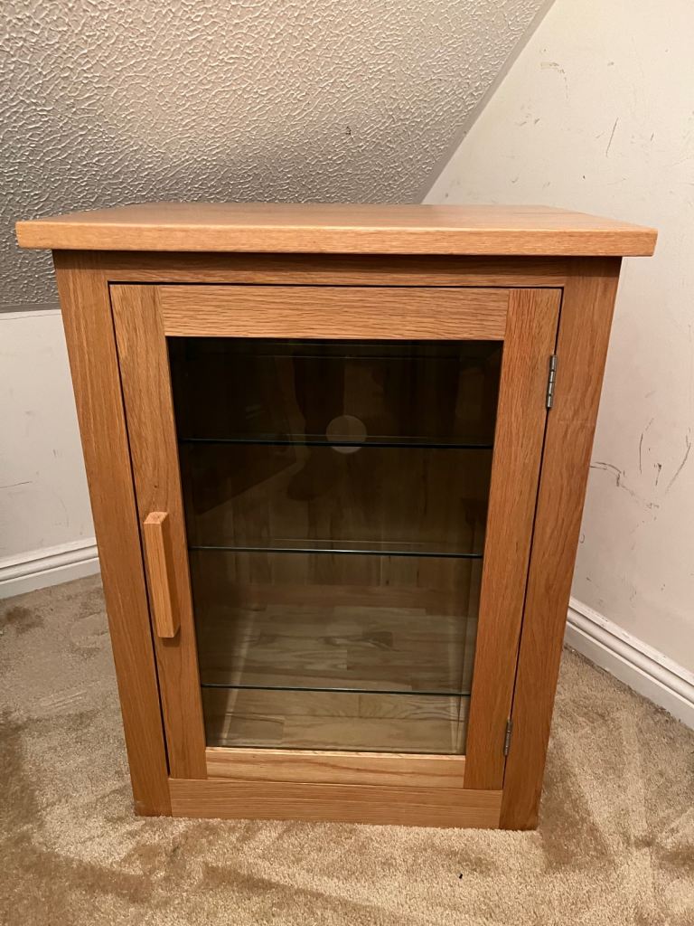 Excellent condition solid wood, 3 movable glass shelves, media unit. Measures L58xW46xH77 cm.