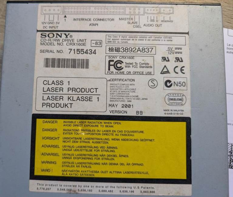 Sony CD Rewritable Model CRX160E Black 12x/8x/32x