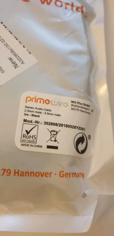 2.5 milimetre male and 3.5 milimetre male black coloured from a smoke and pet free house