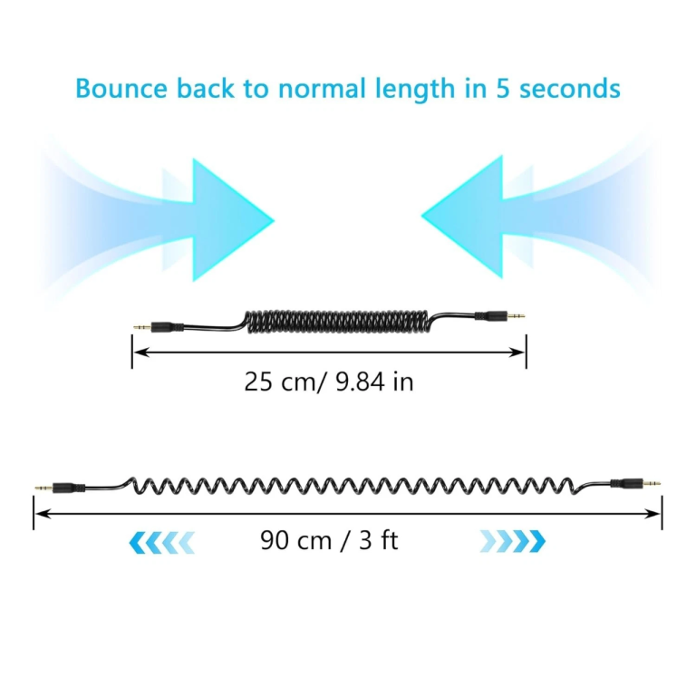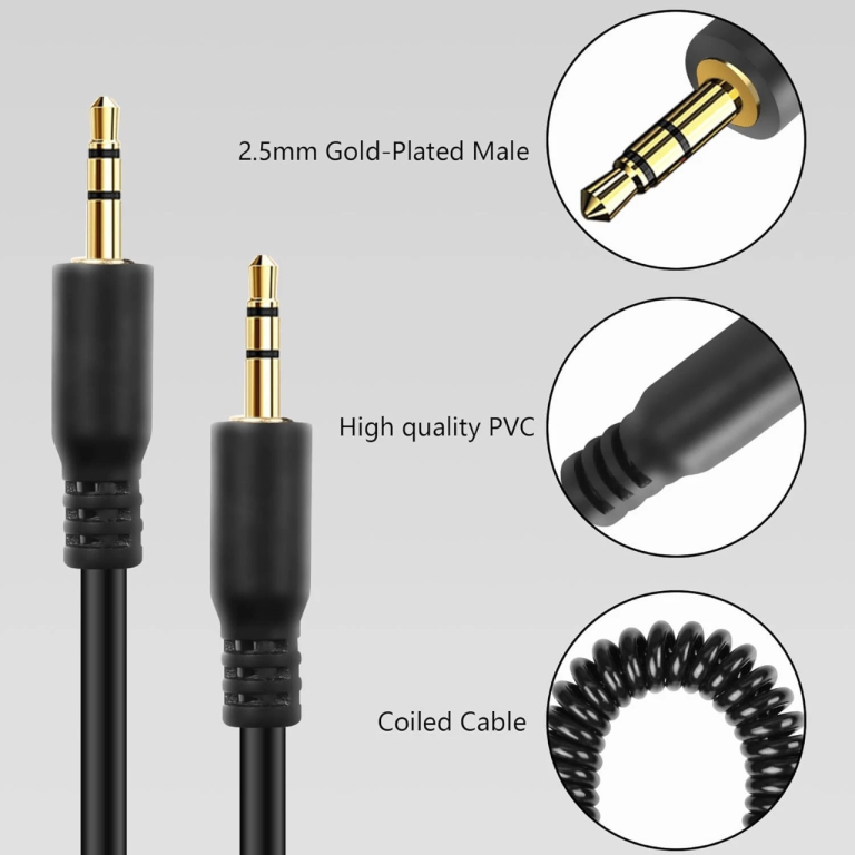 2.5mm audio coiled cable tangle-free design makes it easy to use and store, also easy to carry around. No longer worry about damages, scratches, bendings or tearings.
