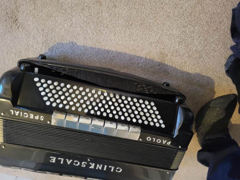 This accordion is bespoke made in Fife scotland very sought after box Comes with padded rucksack type case
