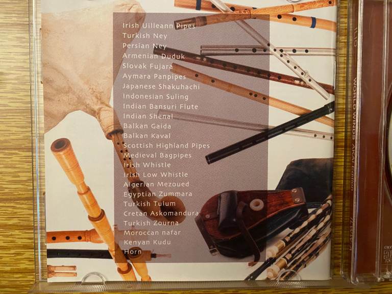 24 wind sound types from Irish Uilleann Pipes, Turkish Ney, Japanese Shakuhachi, etc. See the inside cover photo for full list.