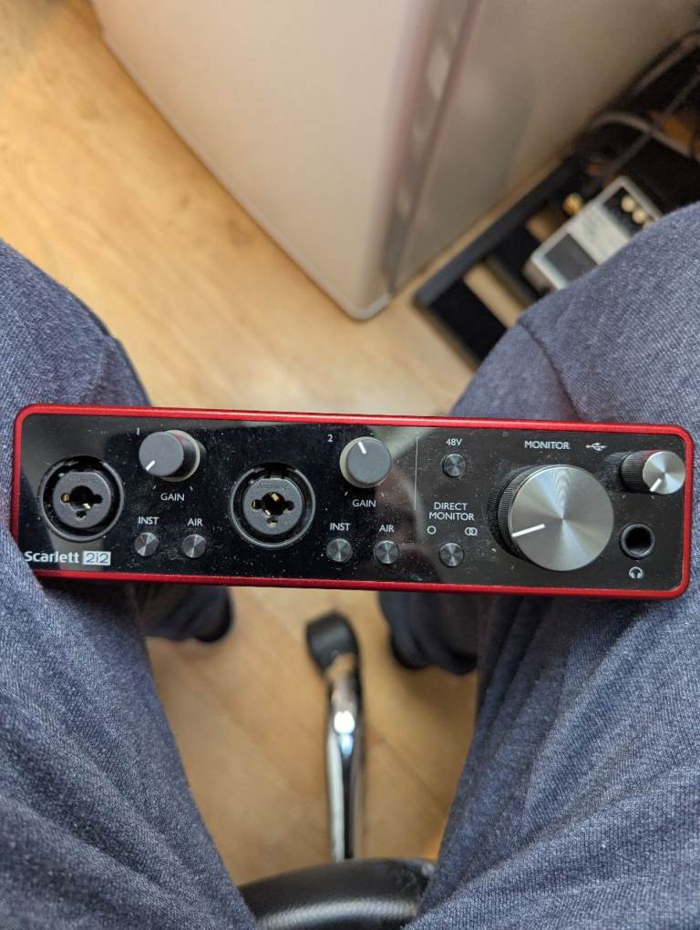Focusrite 212 , microphone & stand , headphones , unit & microphone have never been used , headphones have had light usage