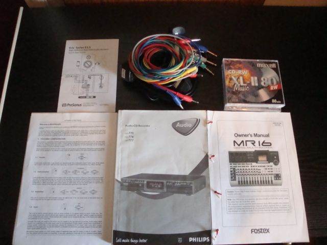 For Sale, 16 Track Home Recording Studio in very clean and tidy condition, Comprising Fostex MR16 Digital Multitracker with Owners Manual, Philips CDR775 Twin deck CD Recorder and Copier with Manual, Remote, and New CD/RW discs, Eris Presonus E3.5 High Definition Near Field Studio Monitors and Behringer Ultrapatch Pro PX200 patch bay with User Manual and new patch leads. All with power/audio leads and manuals. Too much spec to list but feel free to ask! And All this for less than 200 Quid!