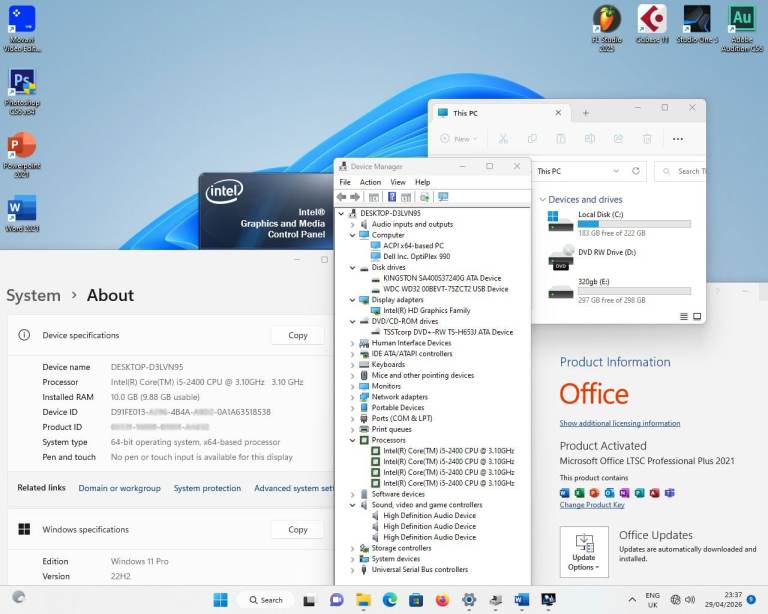** SPECIAL - Music Editing / FL Studio 2025 / Cubase / PreSonus – Intel Core i5 2400 = Intel Core i7 7560U = Intel Xeon E5-2603 V3 + Higher than i7 975, i7 870, i7 4610M - Photos = Actual PC - New Installs - WINDOWS 11 + Microsoft OFFICE 2021 + MUSIC PRODUCTION Software (see below) + Movavi VIDEO EDITOR 2023 – This is a Business PC suitable for ALL OFFICE TASKS + Creative Projects incl. MUSIC + VIDEO + PHOTO EDITING - Full specs below...