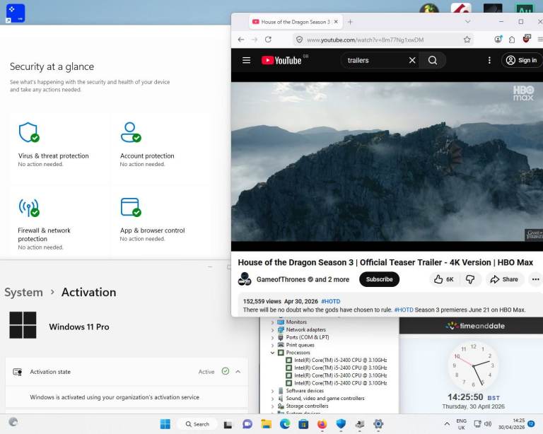 • Fresh Installs -: Windows 11 Professional (64bit, Activated), Direct X and C++ (latest updates). Windows Defender updated (This proves windows is activated). ** NOTE: See windows screen picture 15 - Activation / YouTube video date / Time and Date Website - indicating NEW PC offer.