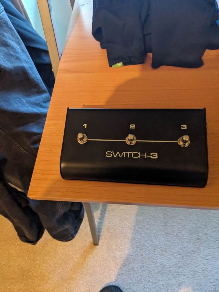Barely used switch 3 footswitch 3 way footswitch for tc helicon vocal processing units. Please Google for full spec and applications . Thanks