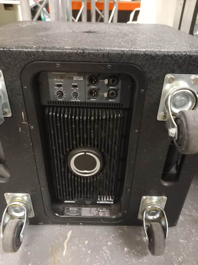 Posting for 13+ yearsUSED Turbosound Milan M15B 2,200 Watt 15 inch Active Bass Bin on Wheels