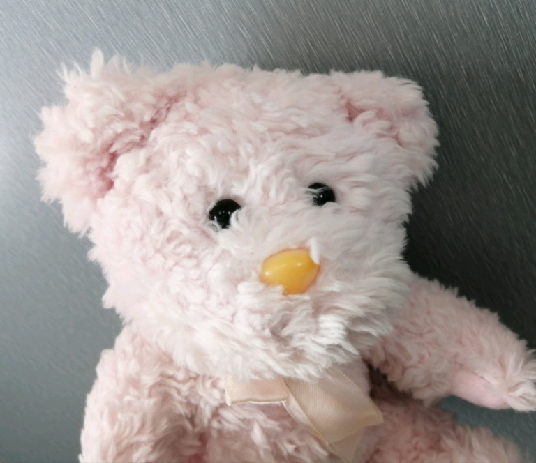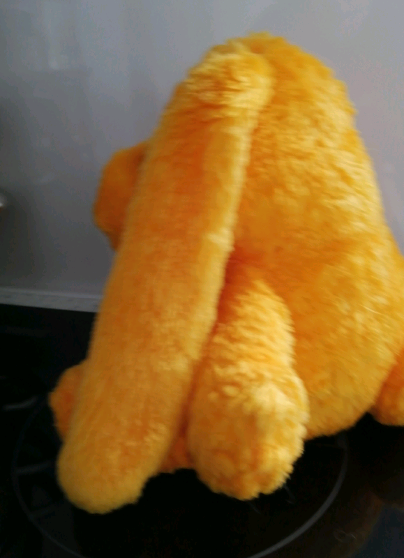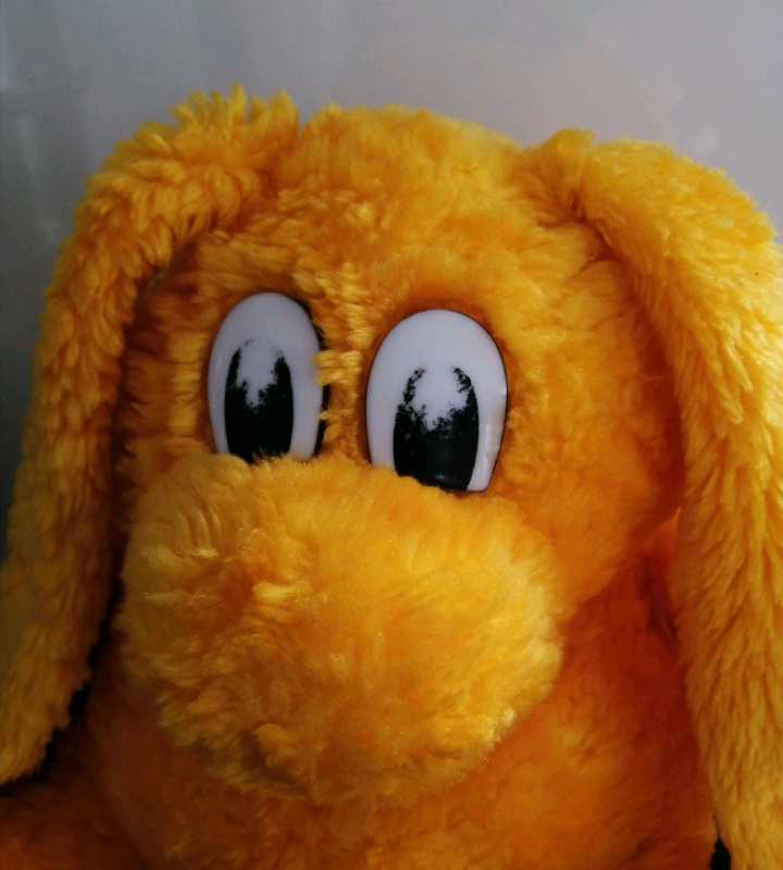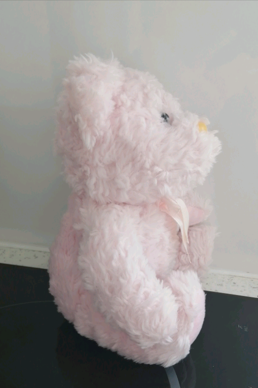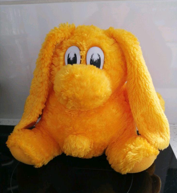 2 Soft toys. More photos are available. One is an unusual 9" character in bright yellow, I'm not sure what it is. The other is a small pink Birthdays bear with a yellow plastic nose. The yellow character has very ling rabbit like ears, large black and white plastic eyes, a nob tail and a tummy button. The main fabric is a medium piled yellow plush whilst the soles of the feet and the ear linings are a shorter pile yellow fabric. The filling feels like polyester fibres with no beans/PE pellets. The toy is very soft and squashy. It dates back to the late 90's. The approx. measurements are: it is 9" (24cm) tall in its sitting position, it has a roundness of 7"x7" (19cm x 19cm) & the ears are 8" (20cm) long. The label has faded so I don't know what brand it is. The pink Birthdays bear is small in size and has a nice face. The main material is a medium piled plush fabric that is a bit shaggy ( it has been washed in the past) but still nice. She wears a light pink ribbon bow. All 4 pads are made of a shorter piled plush fabric. The eyes are all black and are made of glass or similar. The approximate. measurements are: the height in the sitting position is 7" (17.75cm) & the body roundness is 4"x4"x3.1/2" (10cm x 10cm x 8.75cm). The label has faded over time but it is still readable. This dates back to the mid 90's. Both toys are washable, both toys are clean and in good condition. Neither toy is suitable for children under 3 years unless with an older person. They are not suitable for dogs either. Neither have been played with or handled much. They have been part of my soft toy collection used for decoration which I am now downsizing. They can be collected, they can be posted or I can meet within a reasonable distance. I have other items for sale (including other soft toys) and I would be happy to combine and do a deal.