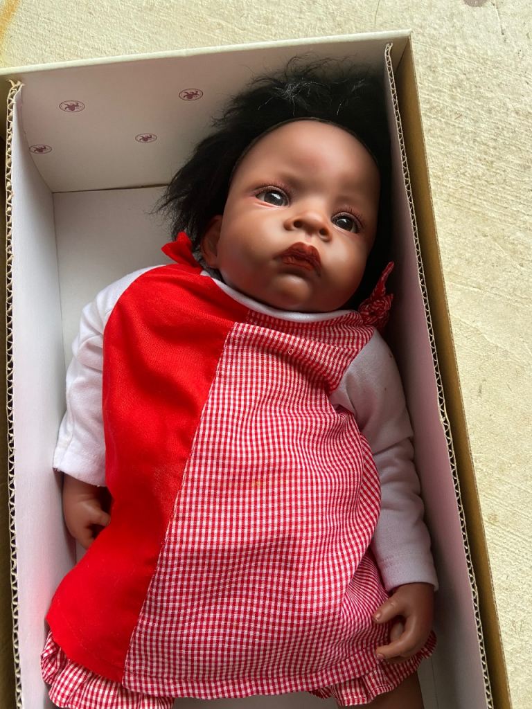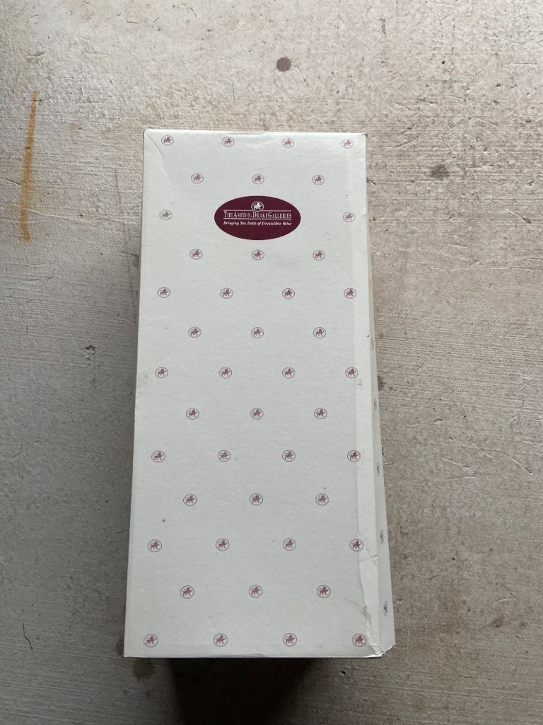 I have for sale an Aston Drake doll, Jasmine goes to Grandma’s. It is in its original box, hardly been played with, nearly new condition. There is a little damage to the box but not to the doll itself. The doll is approximately 50cm in length, as can be seen from the ebay ads they sell for a variety of prices.