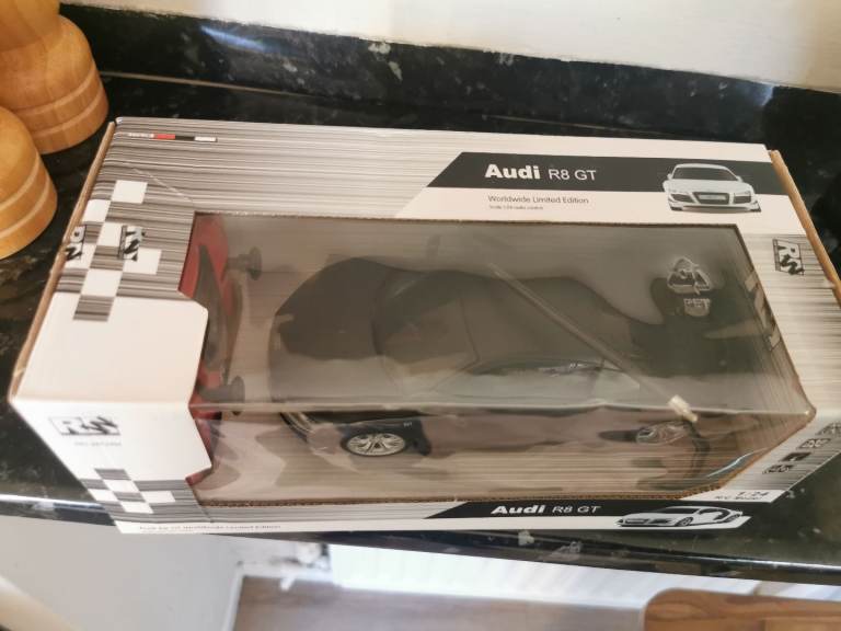 Audi R8 GT... Limited edition radio controlled car never been used... Slight damage to box don't know how not to noticeable don't know how but does not affect contents it's 1-24 scale model and really nice...