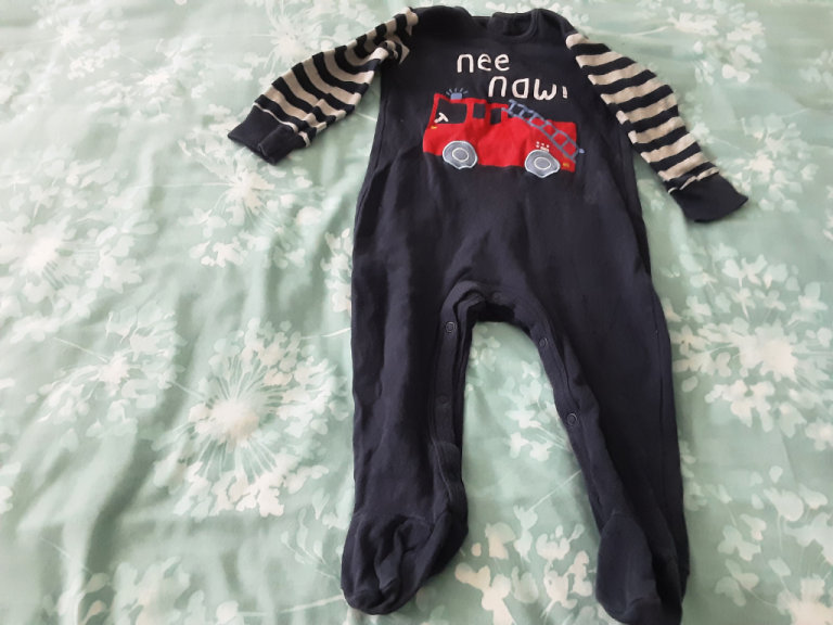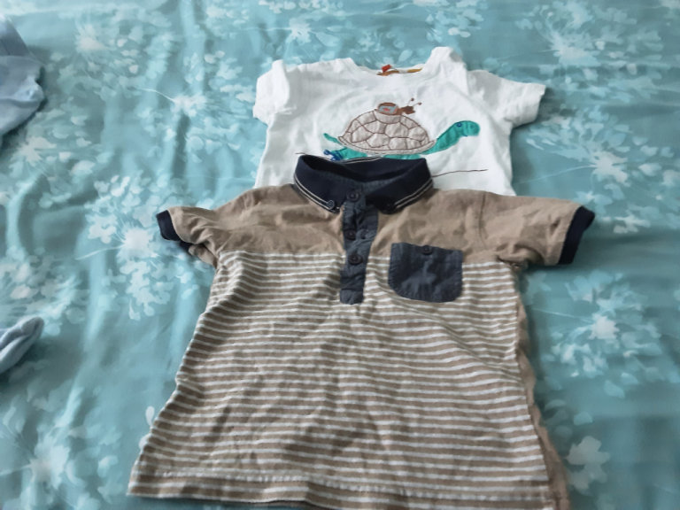 There are 2 sleepsuits 2 t shirts,1 pair jeans,1body suit.The size is 9 to 12 months