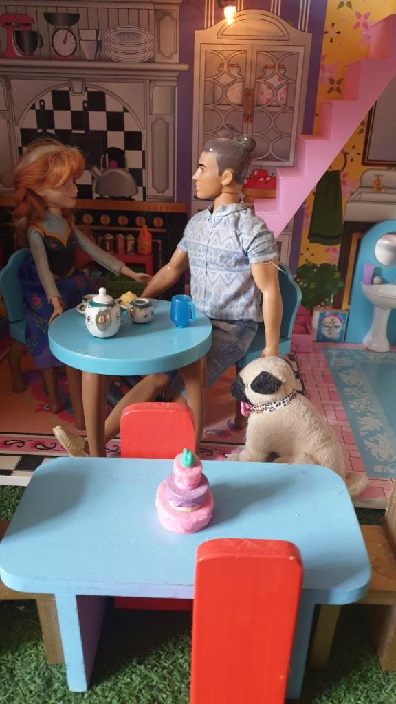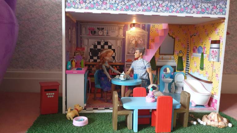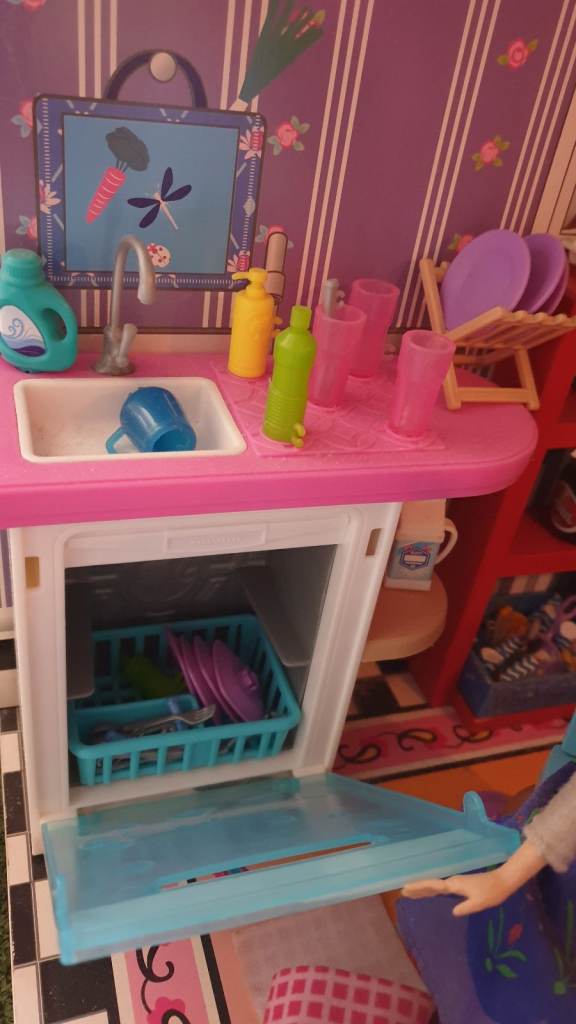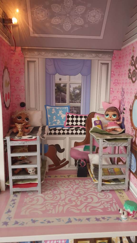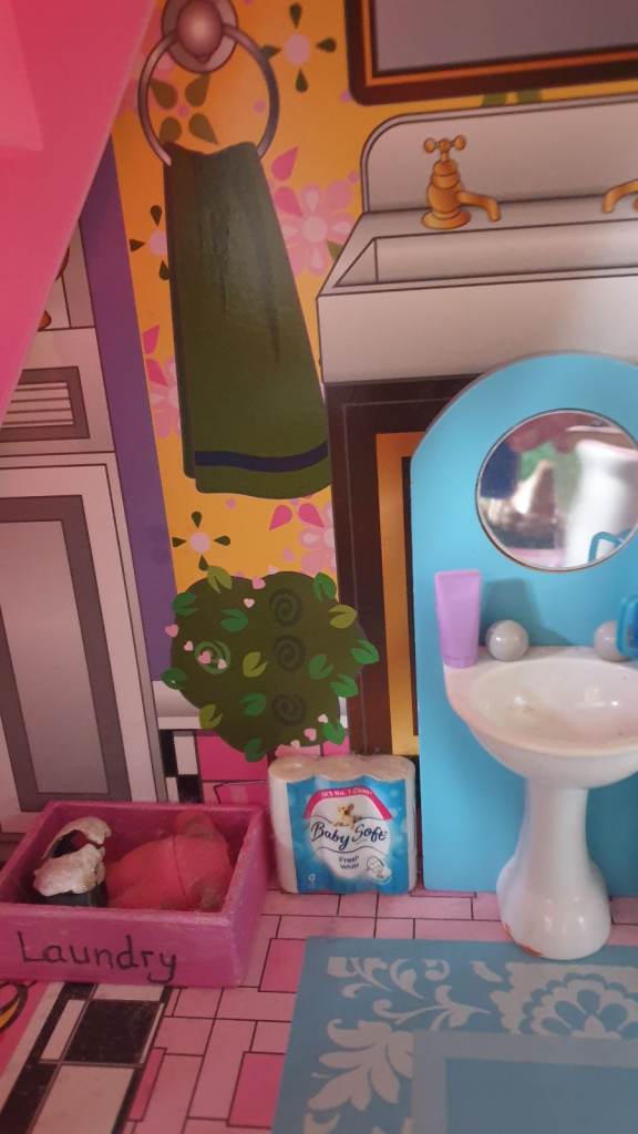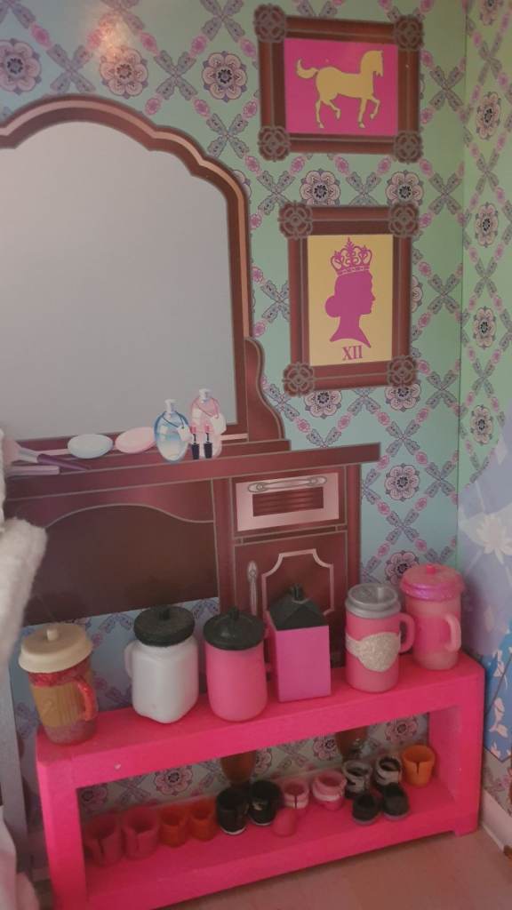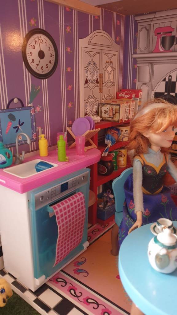 Beautiful imported wooden dolls house with interior lights, retractable awning, 5 × LOL Suprise dolls ( 4 glitter), Anna (Frozen) doll, Barbie Ken Fashionista doll, 3 x toy dogs, 1 x toy cat, furniture including dishwasher, kitchen cupboards, laundry basket, full bathroom furniture- toilet, wash basin, claw china bath, toothbrushes, cutlery and crockery, make believe food, look alike grocery items, 3 x tables, 10 x chairs, fireplace with marshmallows, TV and remote, 3 x toy rabbits, sofa with cushions, coffee table, lampstand, 3 x bunk beds, 1 x single bed, bedclothes, bedroom cupboard with LOL dolls accessories etc all in excellent condition. Collection only from WR6
