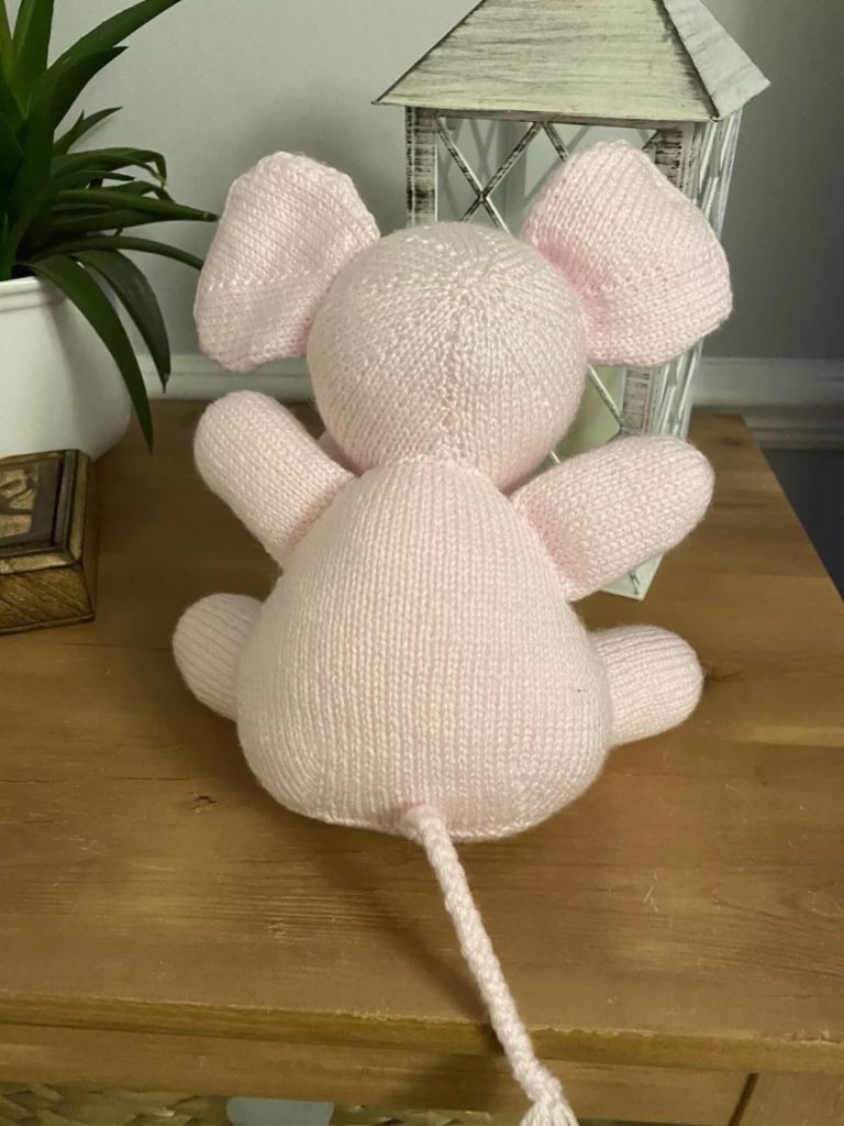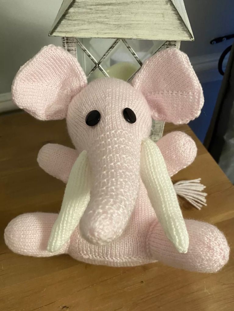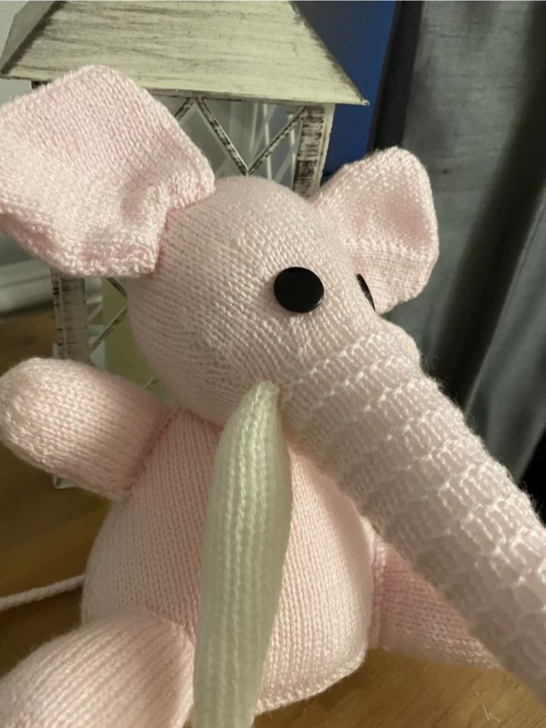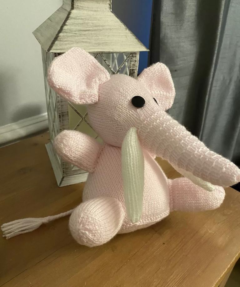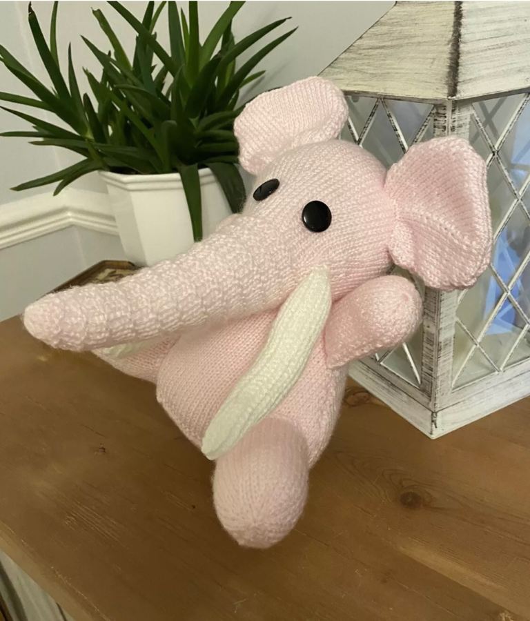 Brand New: Hand knitted pink & white soft toy elephant. Homemade π§Άπ