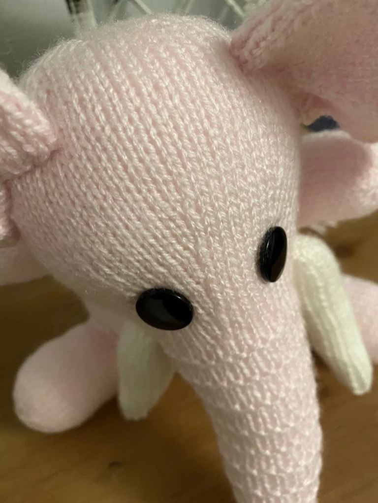 Brand New: Hand knitted pink & white soft toy elephant. Homemade ππ§Ά