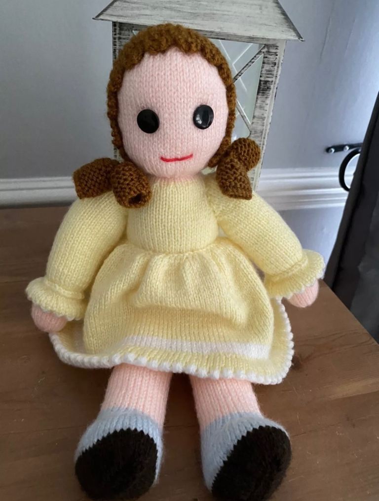 Brand New- Homemade Hand Knitted Standing/Sitting Soft Toy Doll