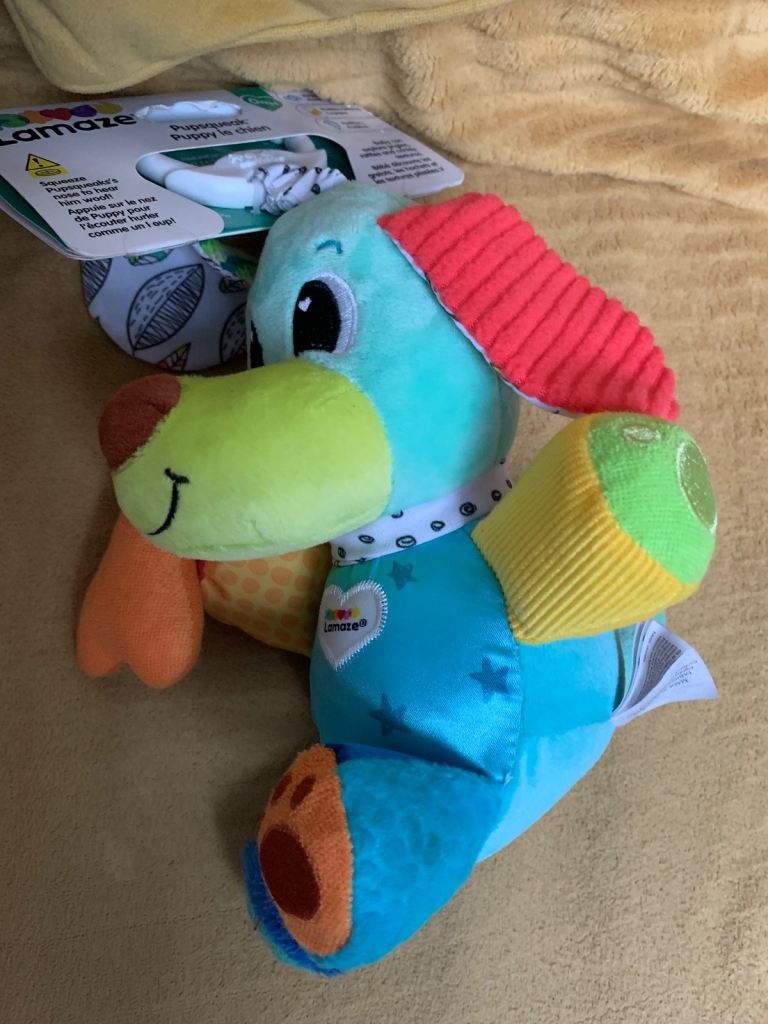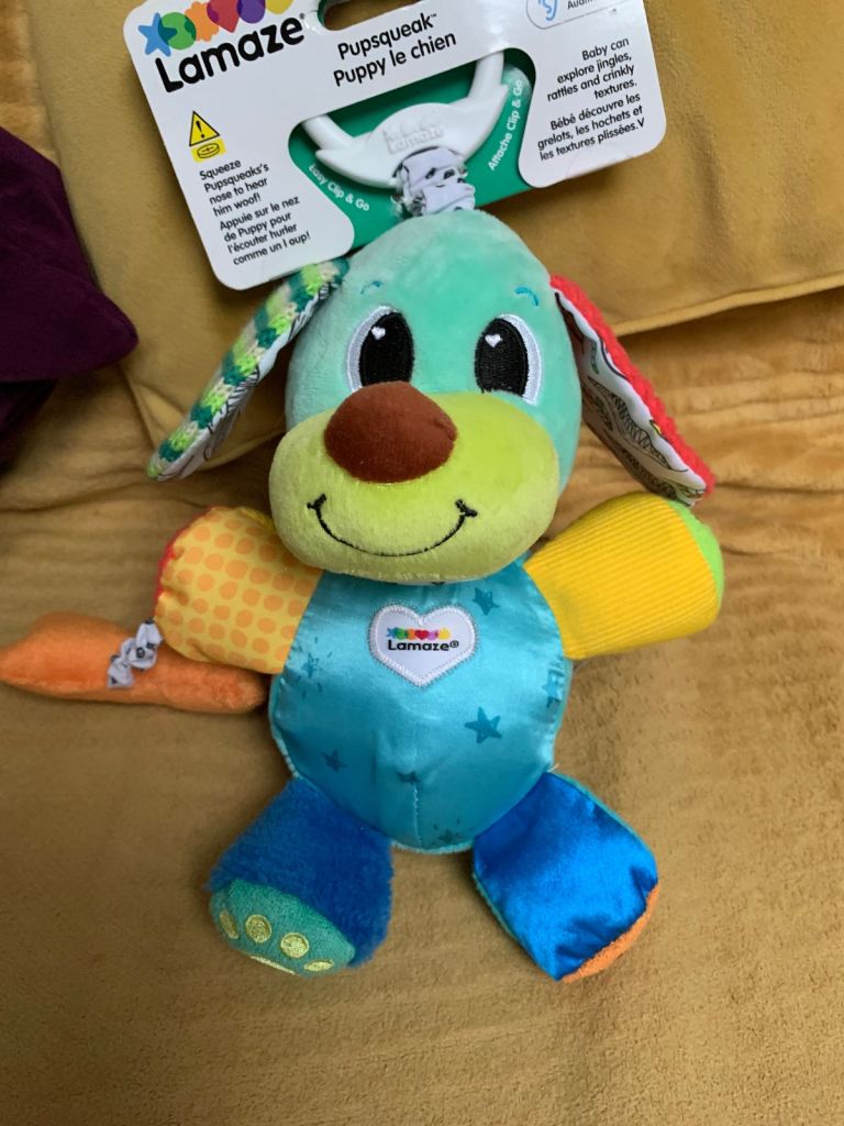 Posting for 12+ yearsBrand new with tags pup-squeak clip and go toy
