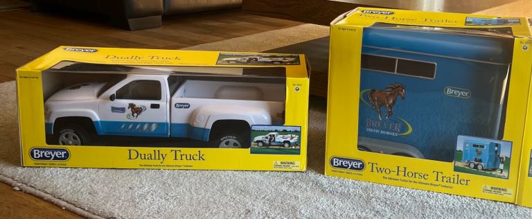 Breyer Dually Truck and 2 Horse Trailer. Really good condition and still have boxes. Can sell together for £90 or separately £47 each.