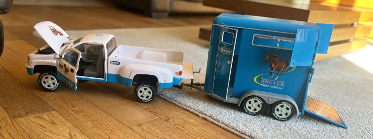 Posting for 1+ yearsBreyer Dually Truck and 2 Horse Trailer