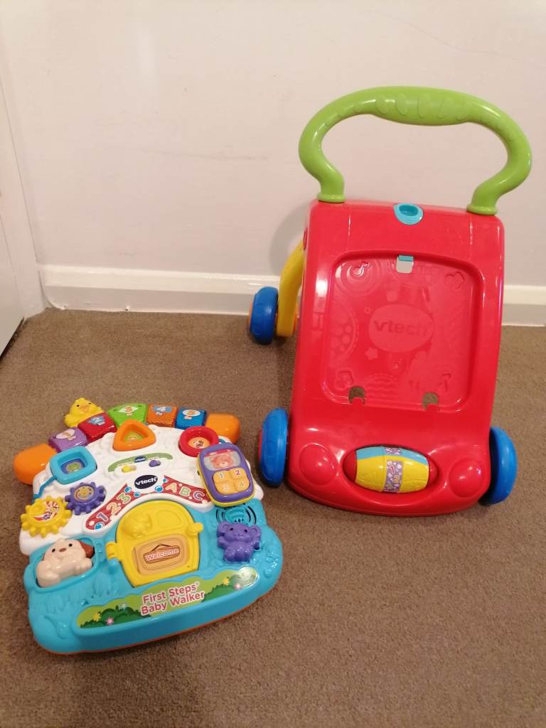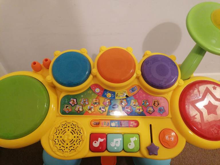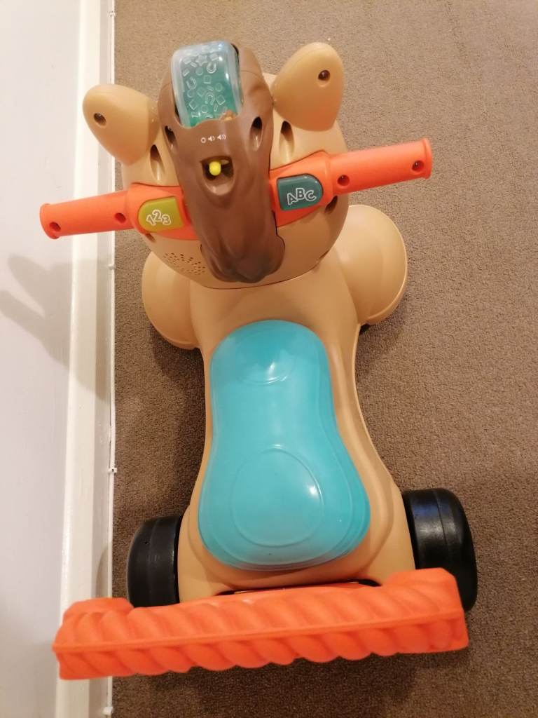 Bundle of 4 V-tech/Fisherprice toddler toys. All used but good condition, working order but will need new batteries. V-tech 3 in 1, V-tech drumkit, Fisherprice ride on horse, and V-tech walker with removable tablet.