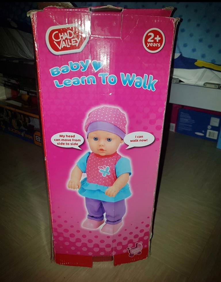 She can walk and move her head side to side as she goes. For more interactive fun, she also laughs, cries and makes baby gurgling sounds! Height 40cm. Batteries required: 3 x AA.