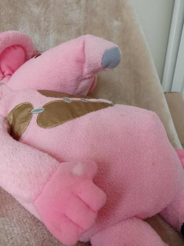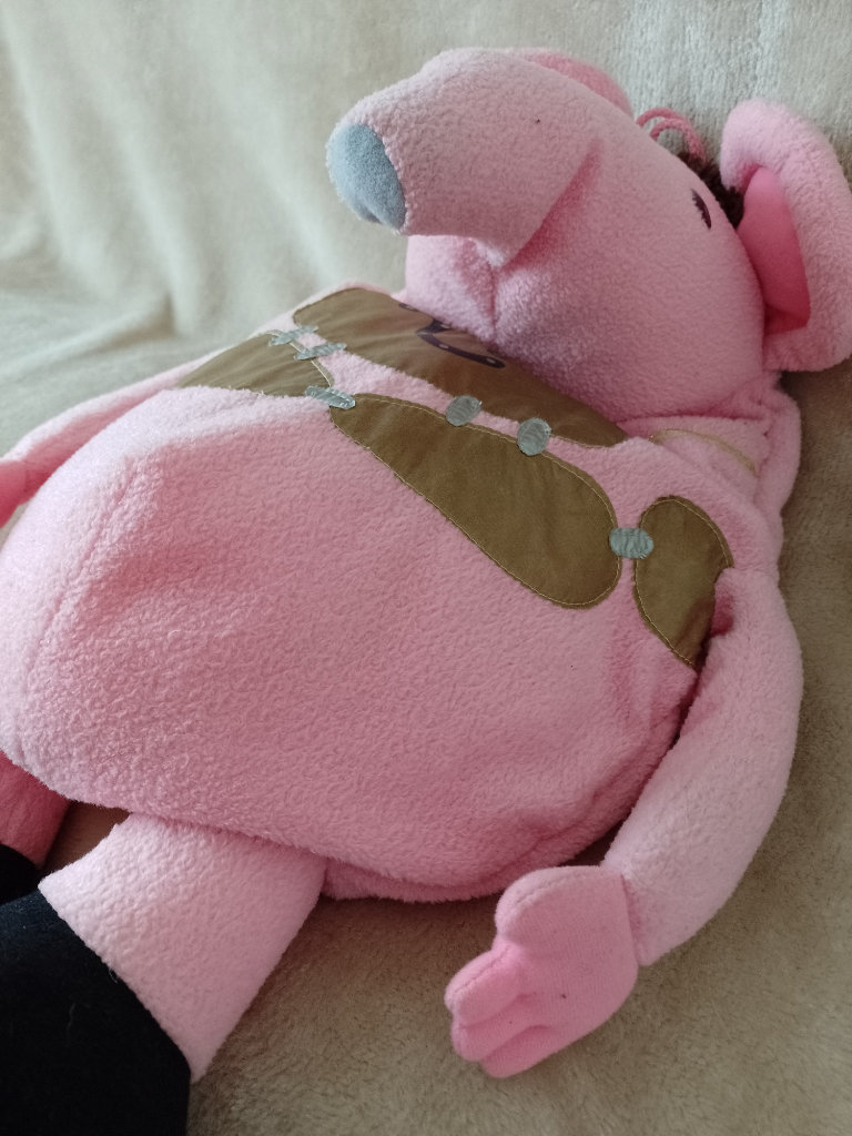 Clanger (Major) hot water bottle cover/pyjamas case. Used and loved. Can't get whistle to work. Approximately 50 cm high and approximately bag size is 35 cm.