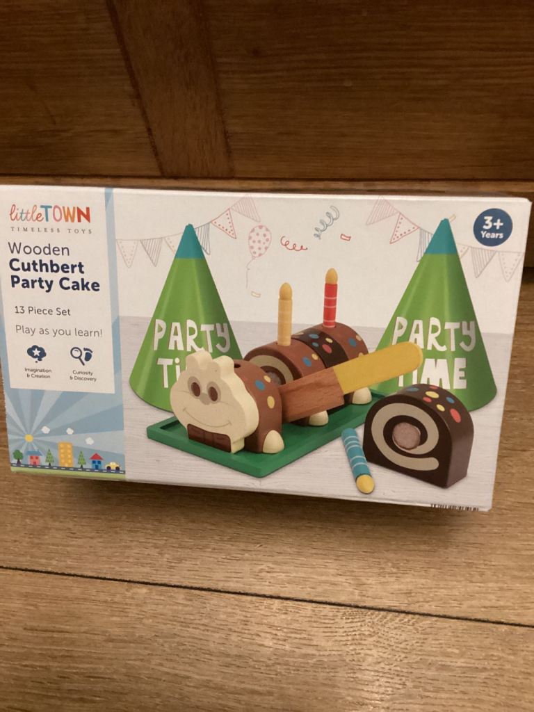 New aldi wooden cuthbert party cake 13 piece set in excellent condition