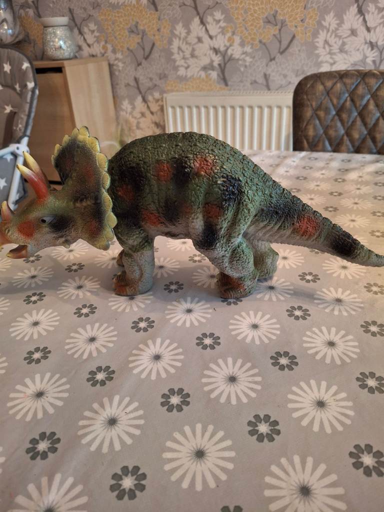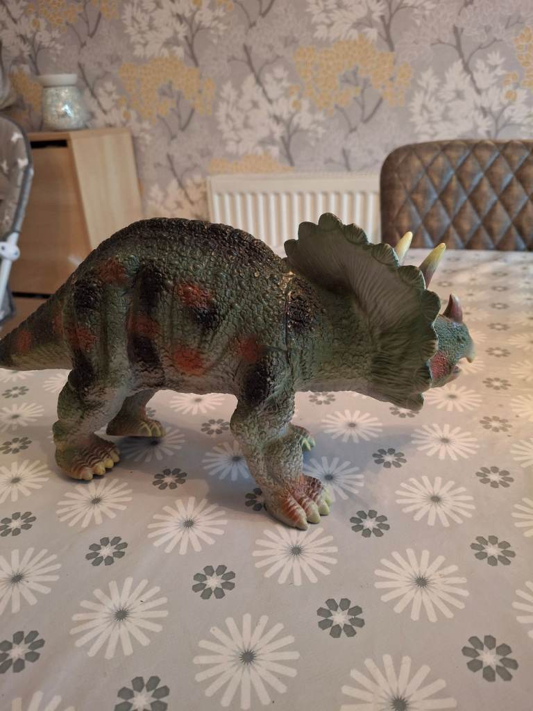 Set if two rubber dinosaur stegosaurus and triceratops exc condition cash on collection can separately sell each for 10 pound