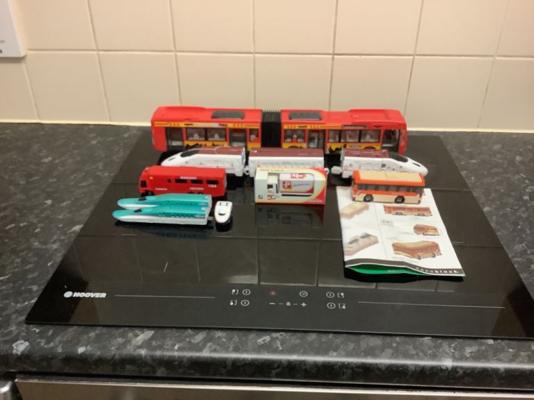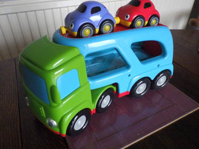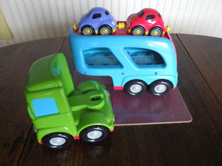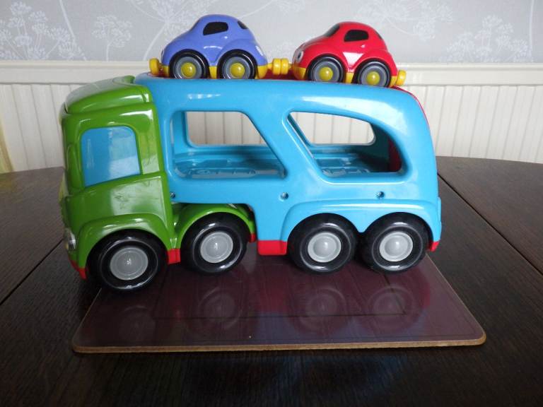 A car transporter with the two cars as supplied when new.