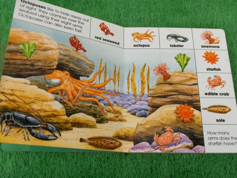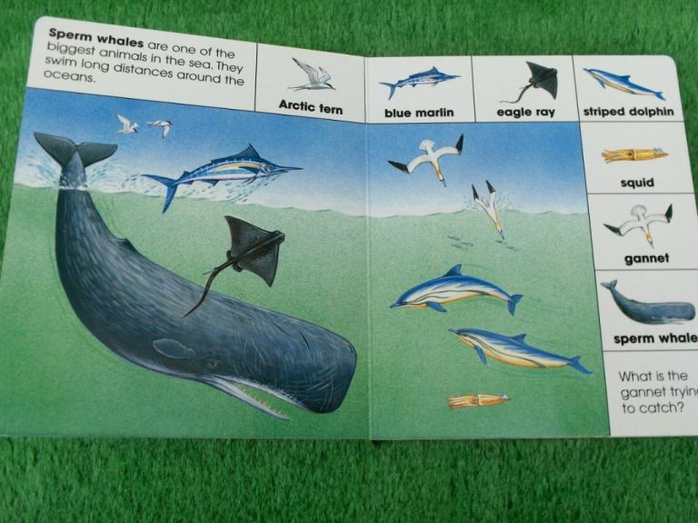 Animals in the Ocean is a sturdy hard back book with bright pictures and an easy to read text. It has information and new vocabulary and a question to answer on every page..Just right for young children. I can arrange collection from Orpington BR6 .