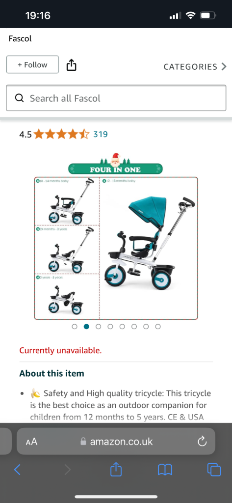 ** open to offers** Suitable for ages 12 months to 5 years, detachable and ajustable push handle for adult steering. Comes with front holder and rear storage basket.