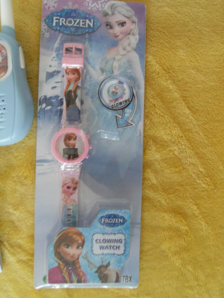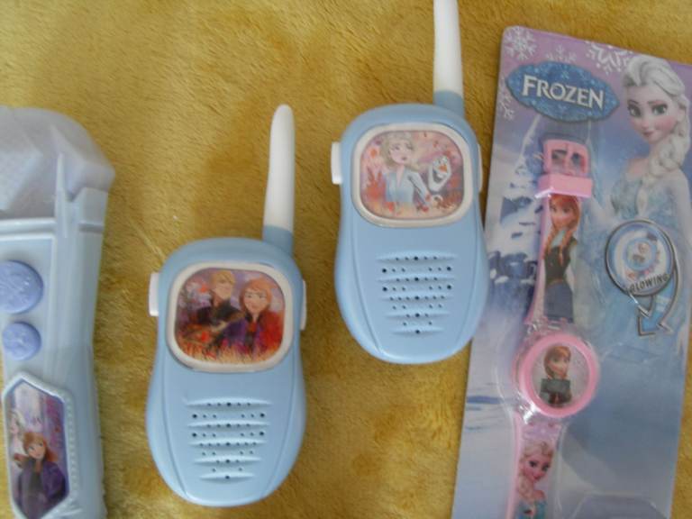 Lovely bundle for Frozen fans, walkie talkies, opened and never used, mic used once, watch brand new packaging, never used, all bought from Argos.