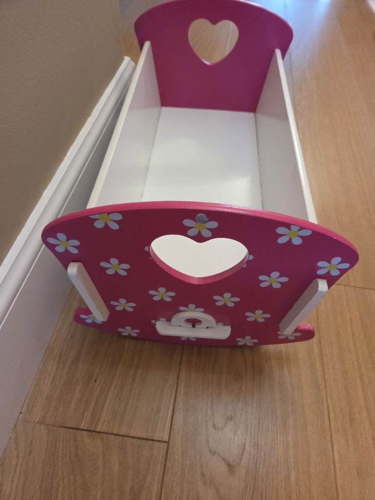 Girls' dolls rocking cot in good condition and well loved and looked after by our daughter. A great Christmas gift for a young girl who enjoys playing with dolls! 💕