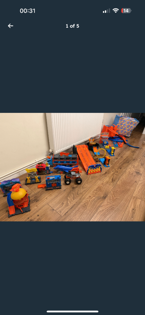 Includes tracks, a monster truck, and various play sets. Over £200 worth