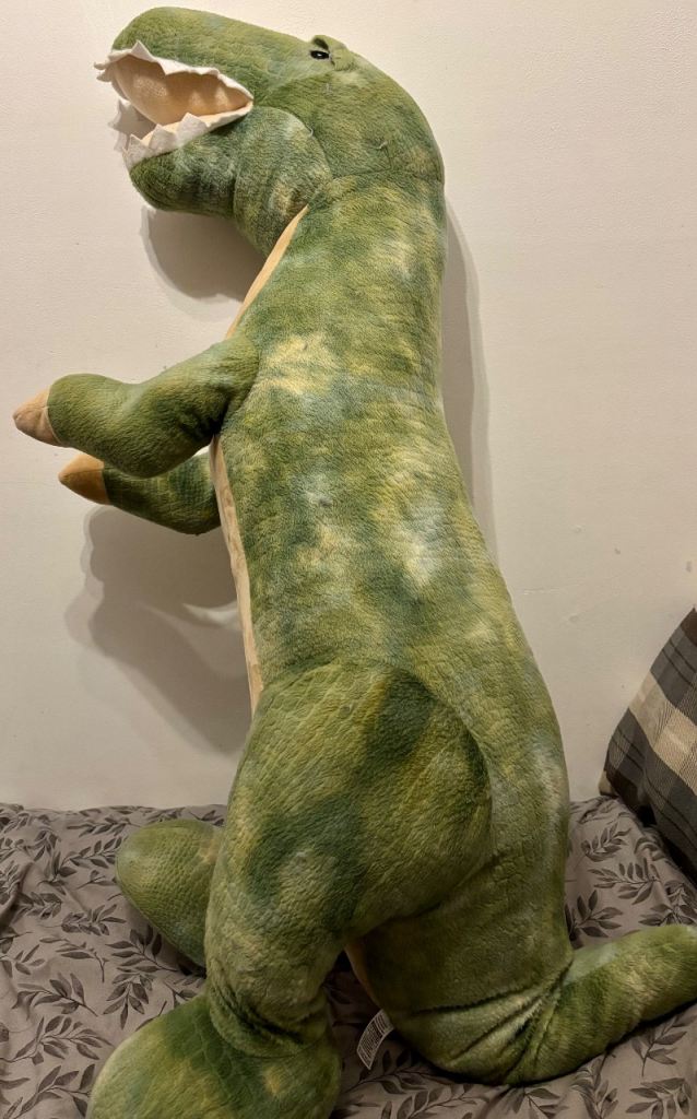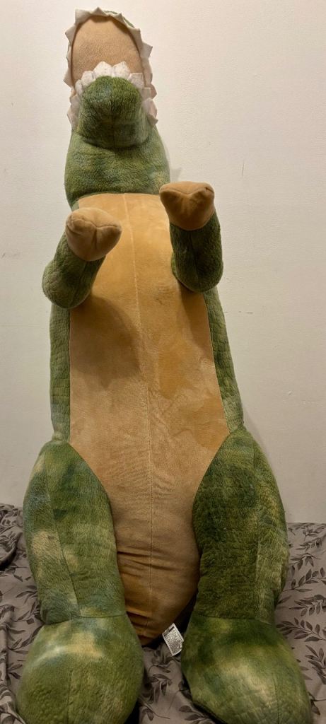 Very large dinosaur Teddy for a themed bedroom for display or just for a dinosaur loving child! It’s quite big, it does have some sort of metal rods inside to help it stand. Can deliver Newcastle or surrounding areas for extra if further away. I’m based Killingworth/ Cramlington