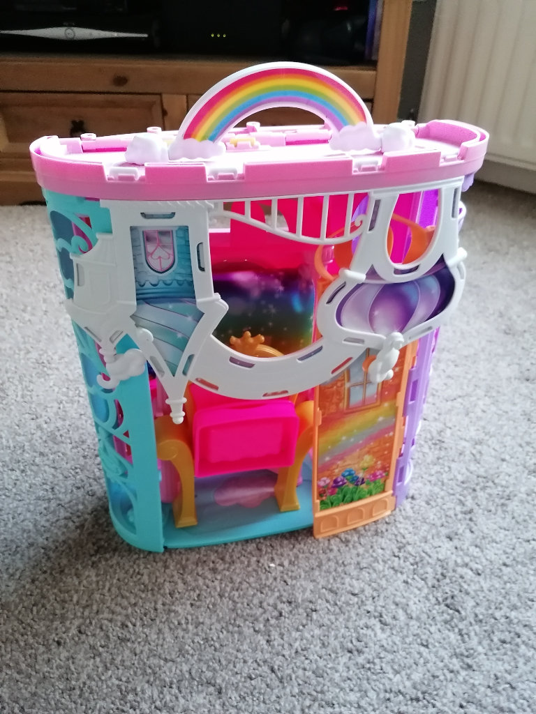 Cleaned and put away to store once my daughter grew out of it but it was barely used and is as good as new, in perfect condition!