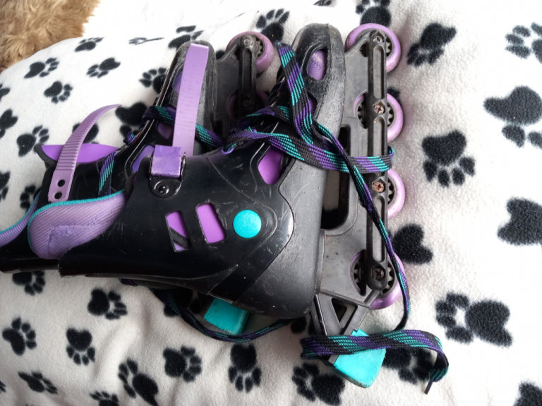 inline skates...one pair size 5 and one pair size 7 nearly new...Wheels have hardly any wear on the wheels..8 pounds each..