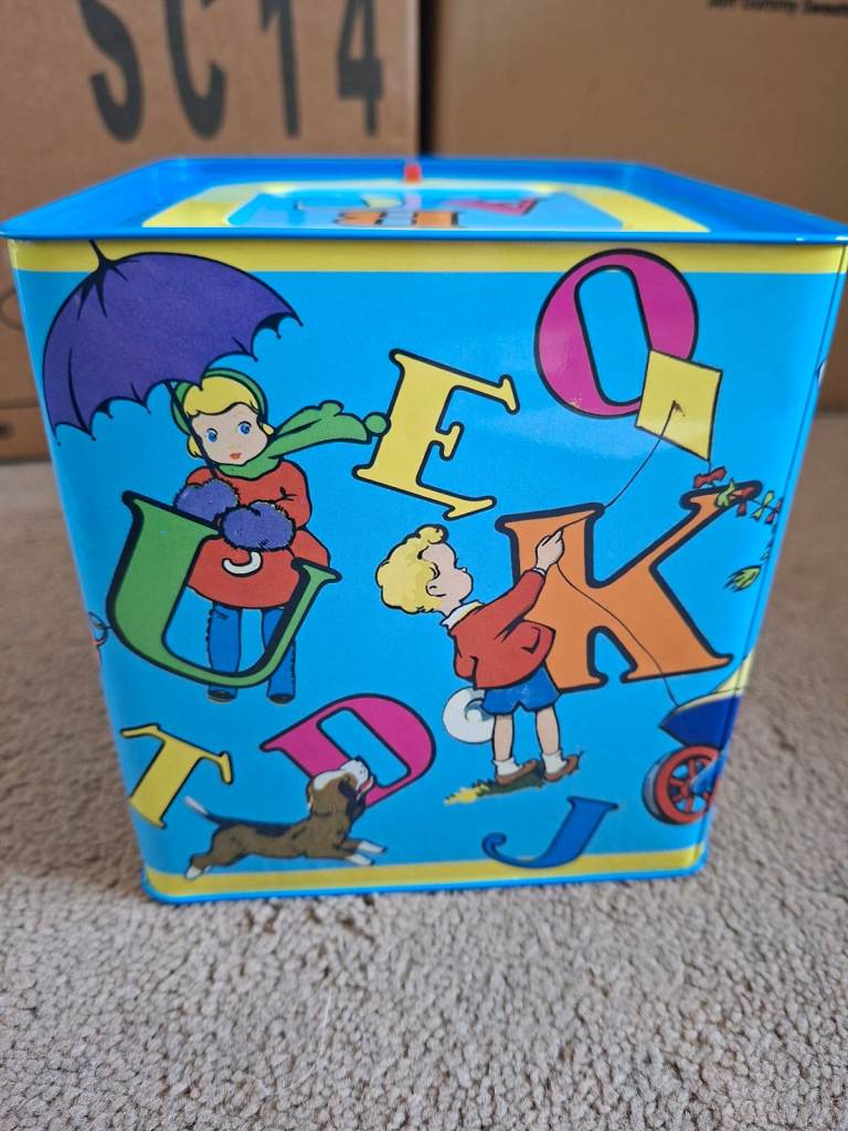 Colourful Metal Box with Pop up Teddy inside