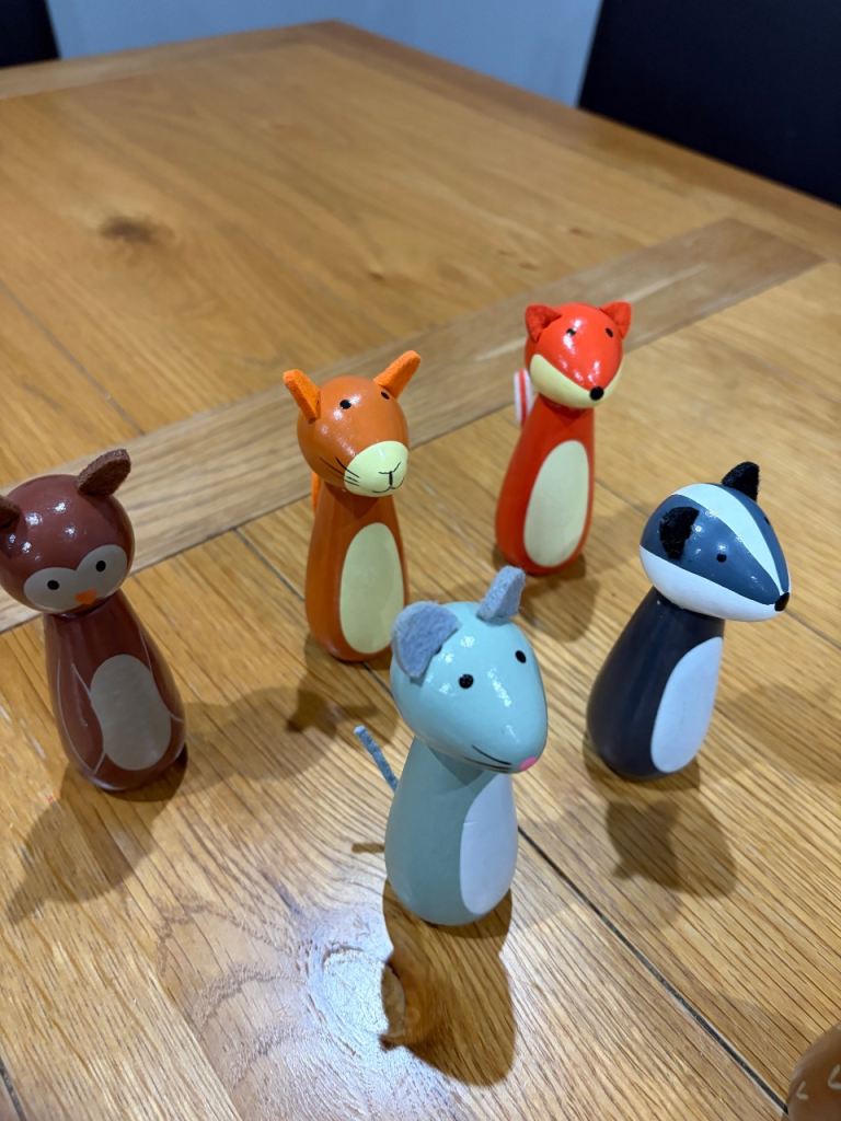Lovely multicoloured Jo Jo Maman Bebe wooden animal skittles set for kids.